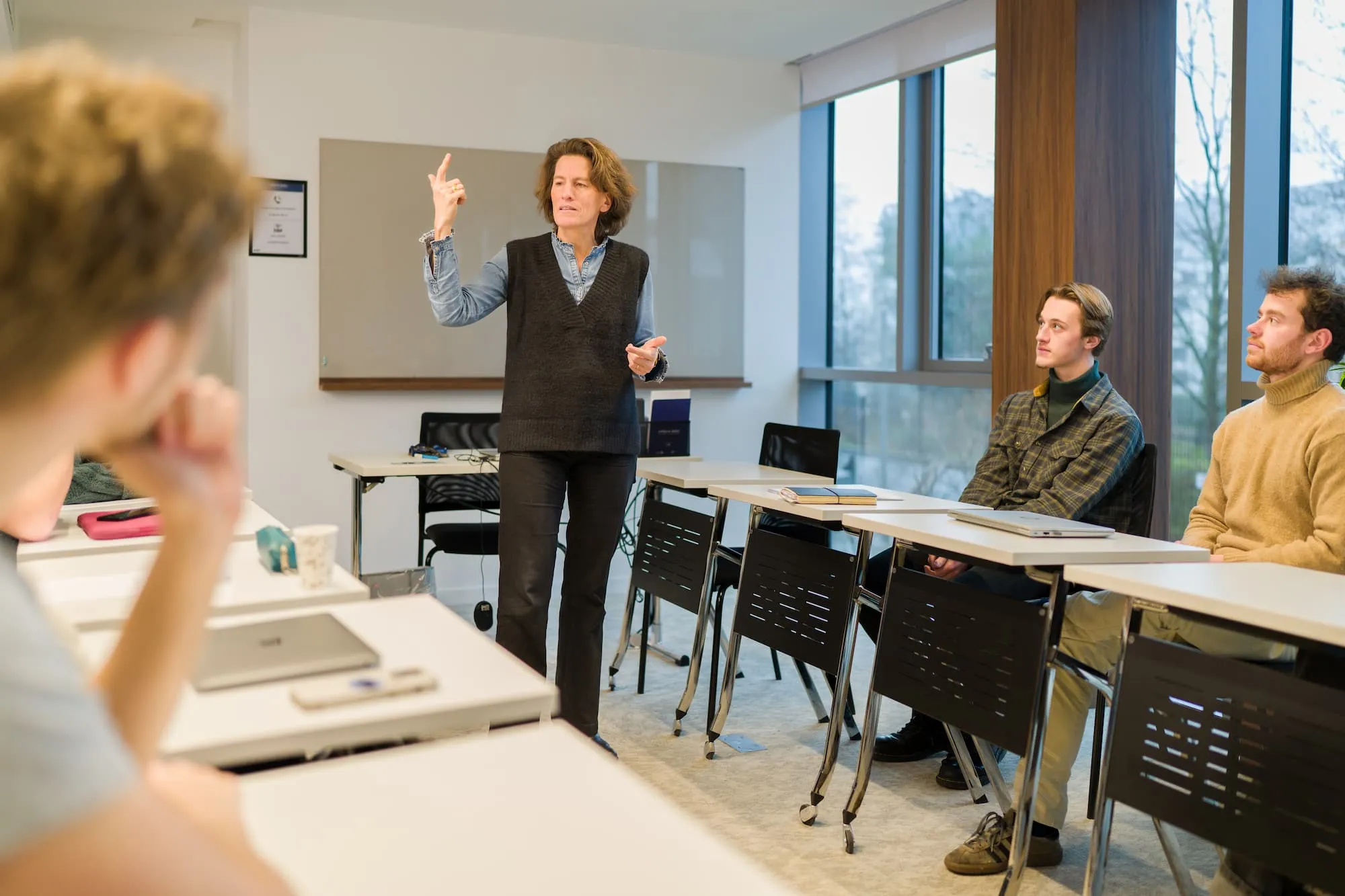 Des salles de classe bordées de lumière et en bord de seine. Elles ont été pensées pour être à taille humaine, modulables pour les projets, examens, moments de concentration et toutes équipées.
